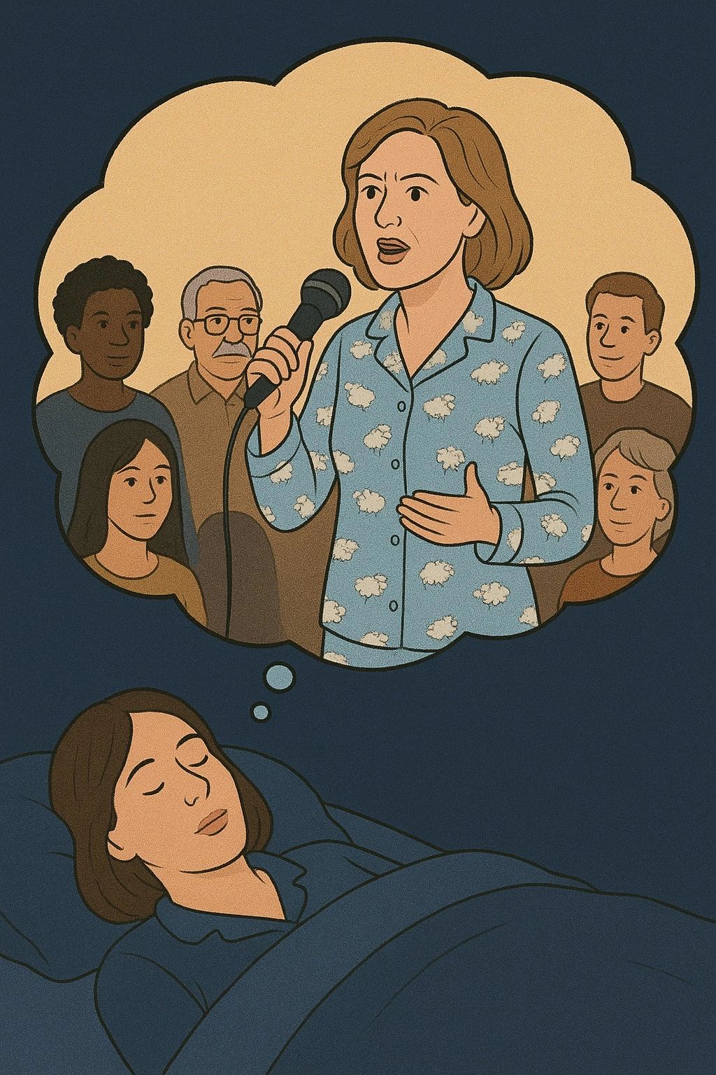 Ainda no sonho, olho para o meu pretenso público e vejo olhos sedentos e vozes famintas por um tropeço em minha fala. Sinto-me vigiada e ao mesmo tempo sinto o calor da chama de quem ateia fogo para chamar atenção à sua causa. Uma causa que não é só sua, mas de toda humanidade. Acordo do meu sono real. Persisto em sonhar, mas agora desperta, sei que não basta. É preciso agir.