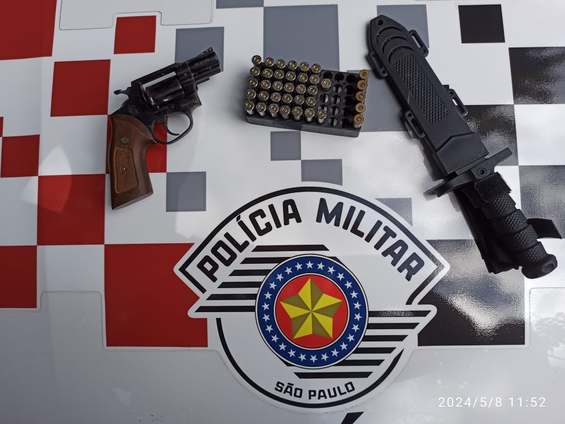 Com a autorização da vítima, os policiais realizaram uma busca domiciliar. Durante a busca, dentro de um guarda-roupa de uso comum do casal, foram encontradas 36 munições intactas e um estojo deflagrado dentro de uma touca, além de um revólver calibre .38, com a numeração suprimida e cabo de madeira da marca Rossi.